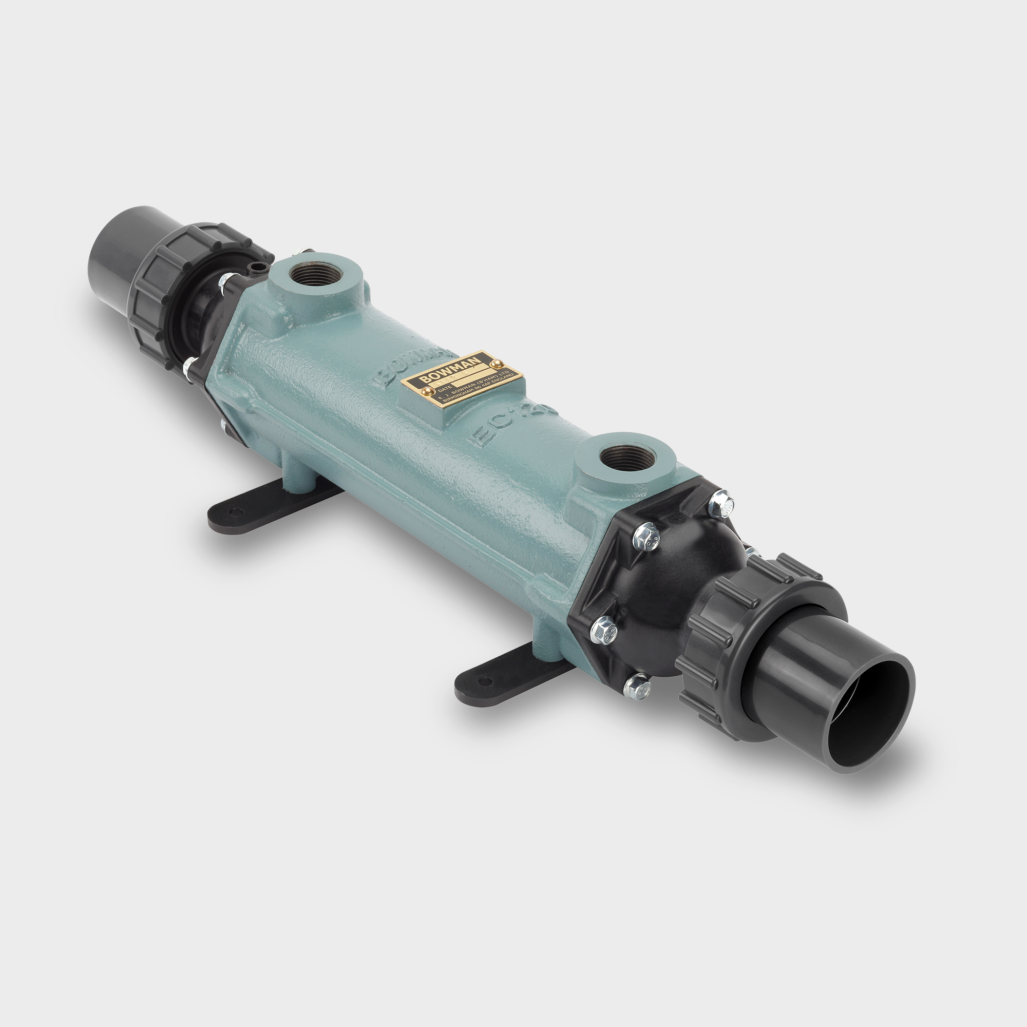 The Bowman EC120-5113-3 is an efficient shell and tube swimming pool heat exchanger, which is suitable for use with either boiler heated hot water, or renewable energy heating systems such as heat pumps or solar collectors. It features ‘Universal Fit’ composite end covers and a choice of either a titanium, cupro-nickel, or stainless steel tube core.
